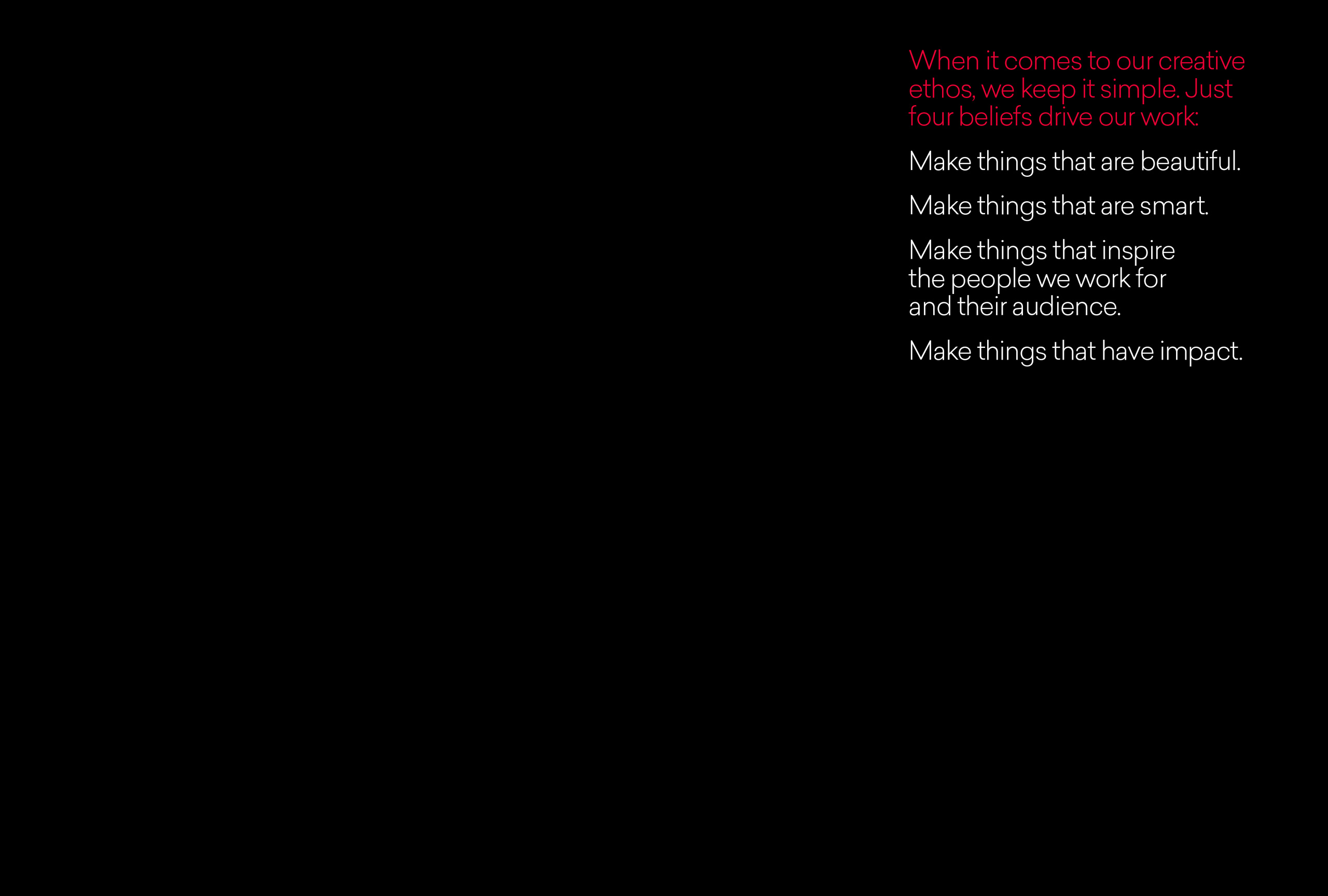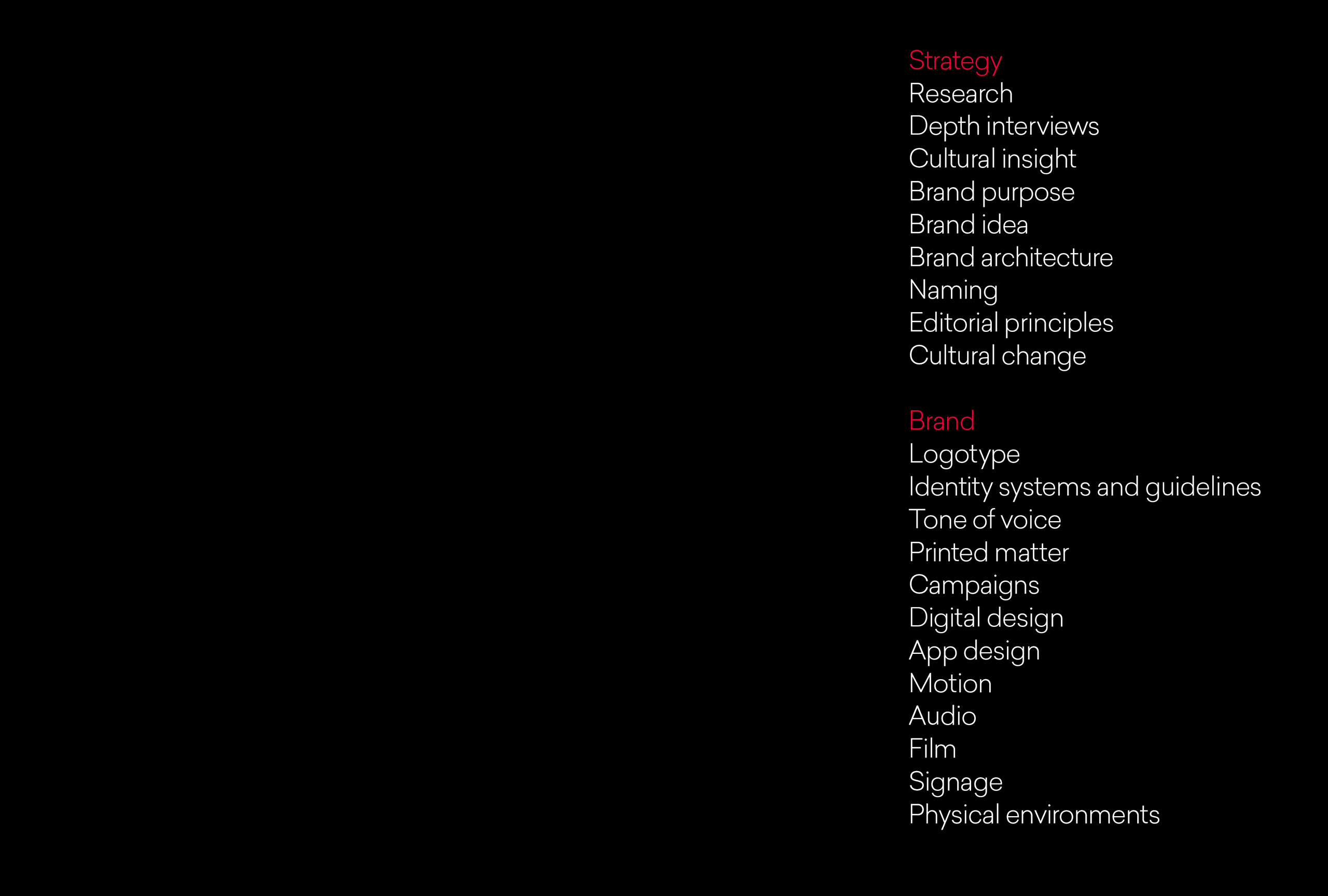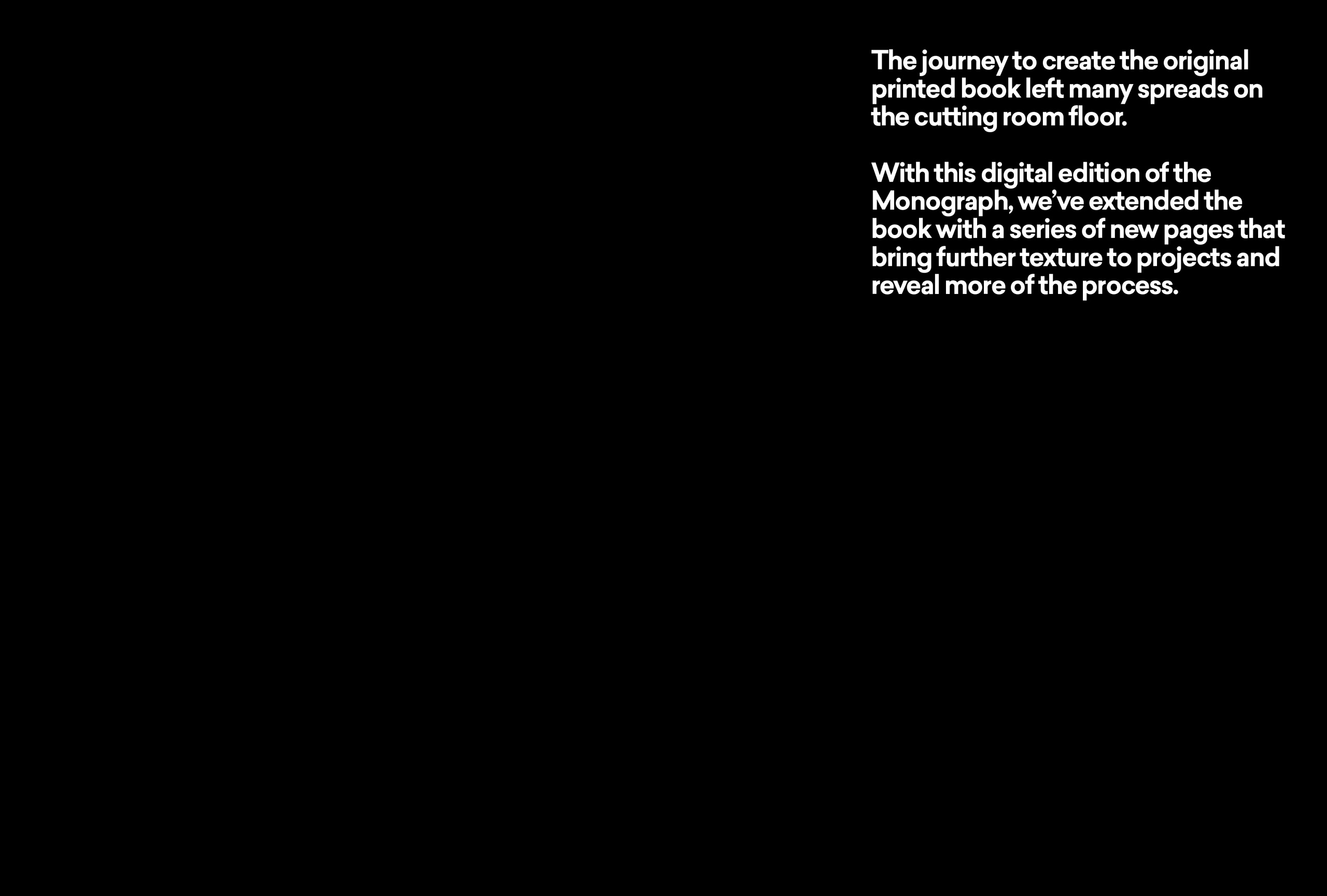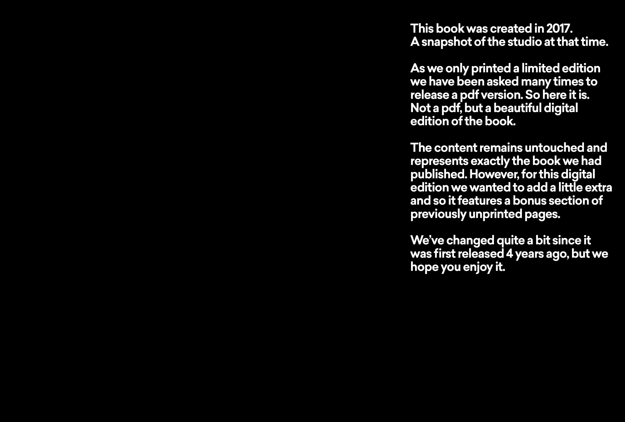 Published in 2017, the 300 page monograph is a snapshot in time of one of the world’s leading brand agencies. It is a reflection of the studio, our work, process and the insights behind it. Most of our work exists in motion, as digital experiences and on screens, so this book was a wonderful opportunity to curate and craft a beautiful object that embodies what we do.